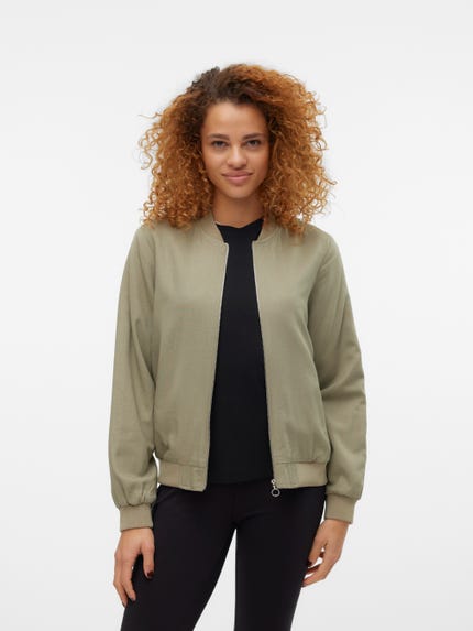 Vi elsker simpelthen the bomber jacket - den er det perfekte bud på en forårsjakke, der bringer dig stilfuldt gennem årstiderne. VERO MODA har et bredt udvalg af flyverjakker. Du finder dem i et stort udvalg af farver, modeller og pasformer. Vælg mellem den feminine bomber jakke i satin, den klassiske grønne flyverjakke og den trendy, blomstrede bomber jakken. Eller skal du bare have én
