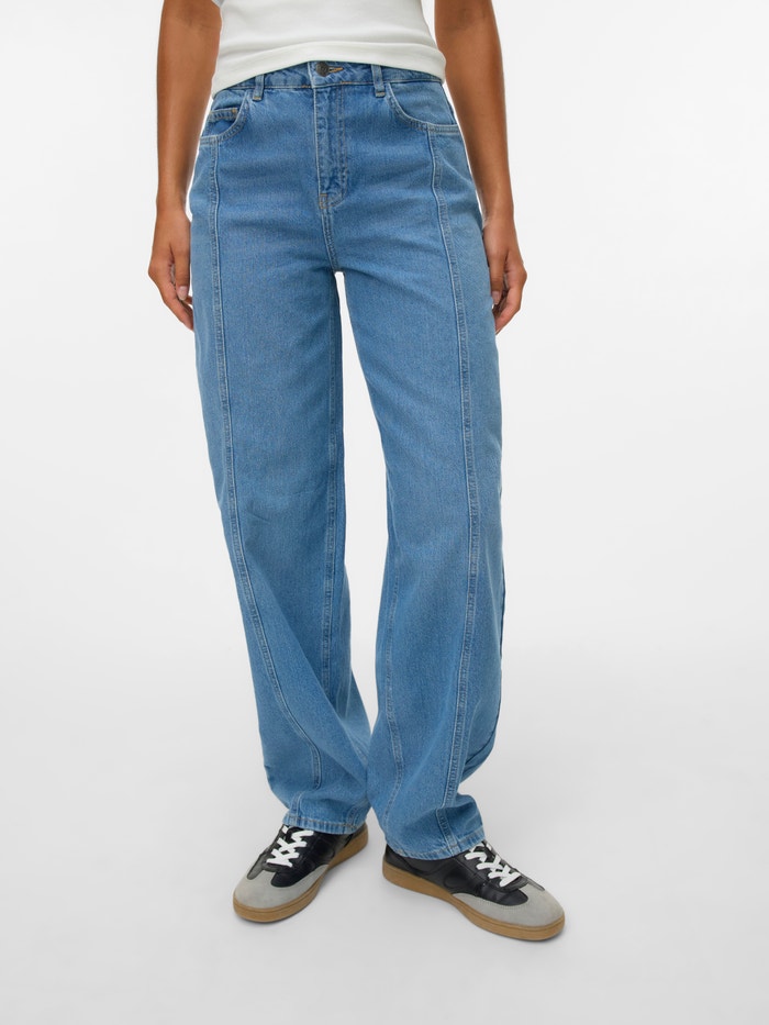 Diese Loose Fit Jeans hat dir in deinem Kleiderschrank garantiert noch gefehlt. Das Design dieser Jeans vereint Tragekomfort und Stil auf perfekte Art und Weise. Trag sie als Teil eines lässigen Alltagslooks oder kombiniere sie mit Absatzschuhen und einem Partyoberteil zu einem schönen und klassischen Look für besondere Anlässe, der nie aus der Mode kommt.