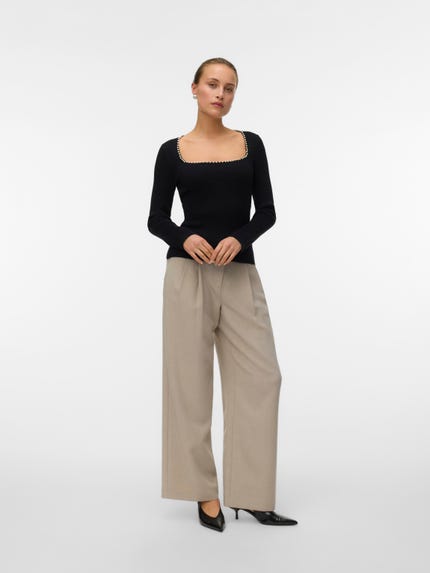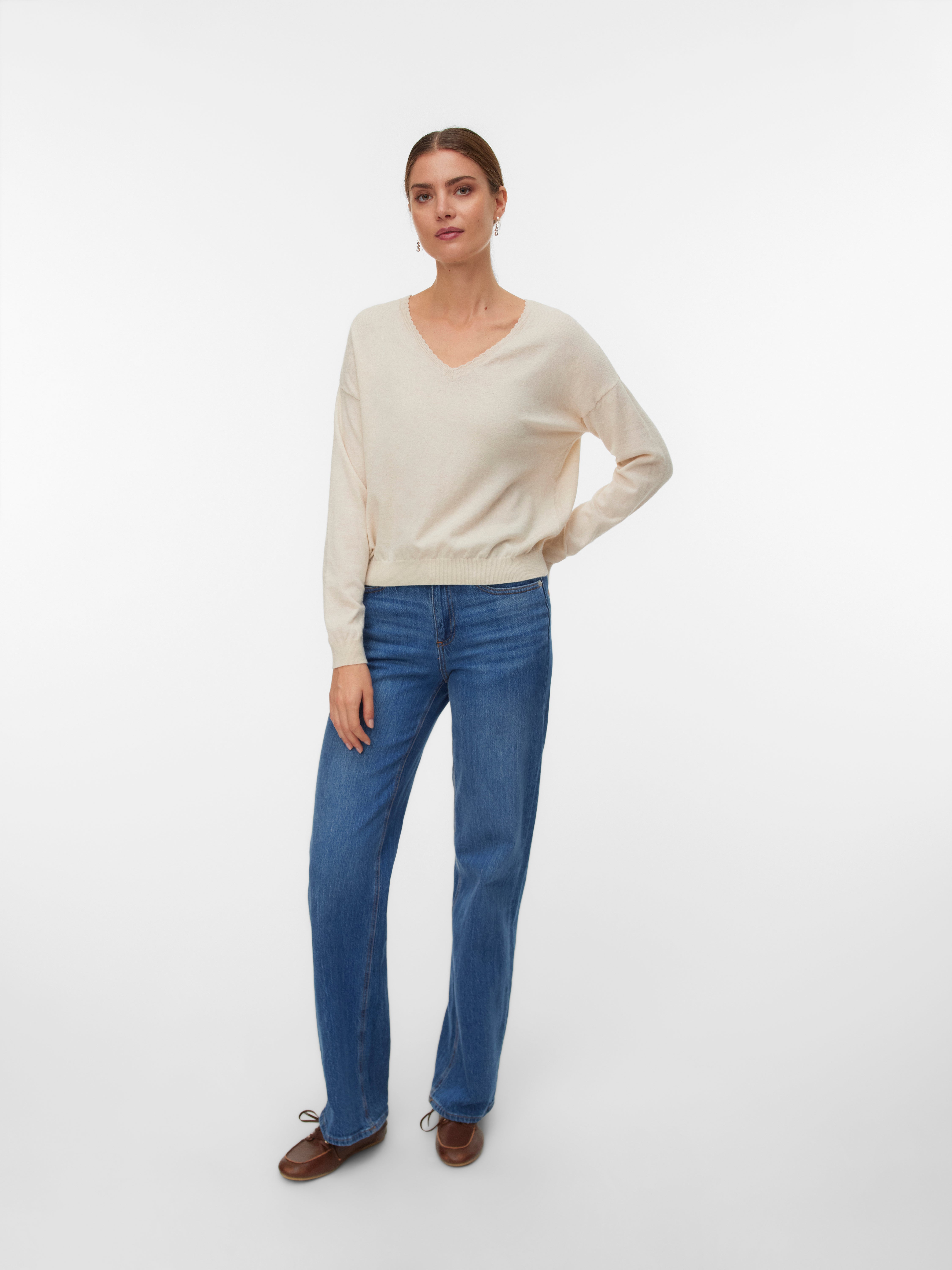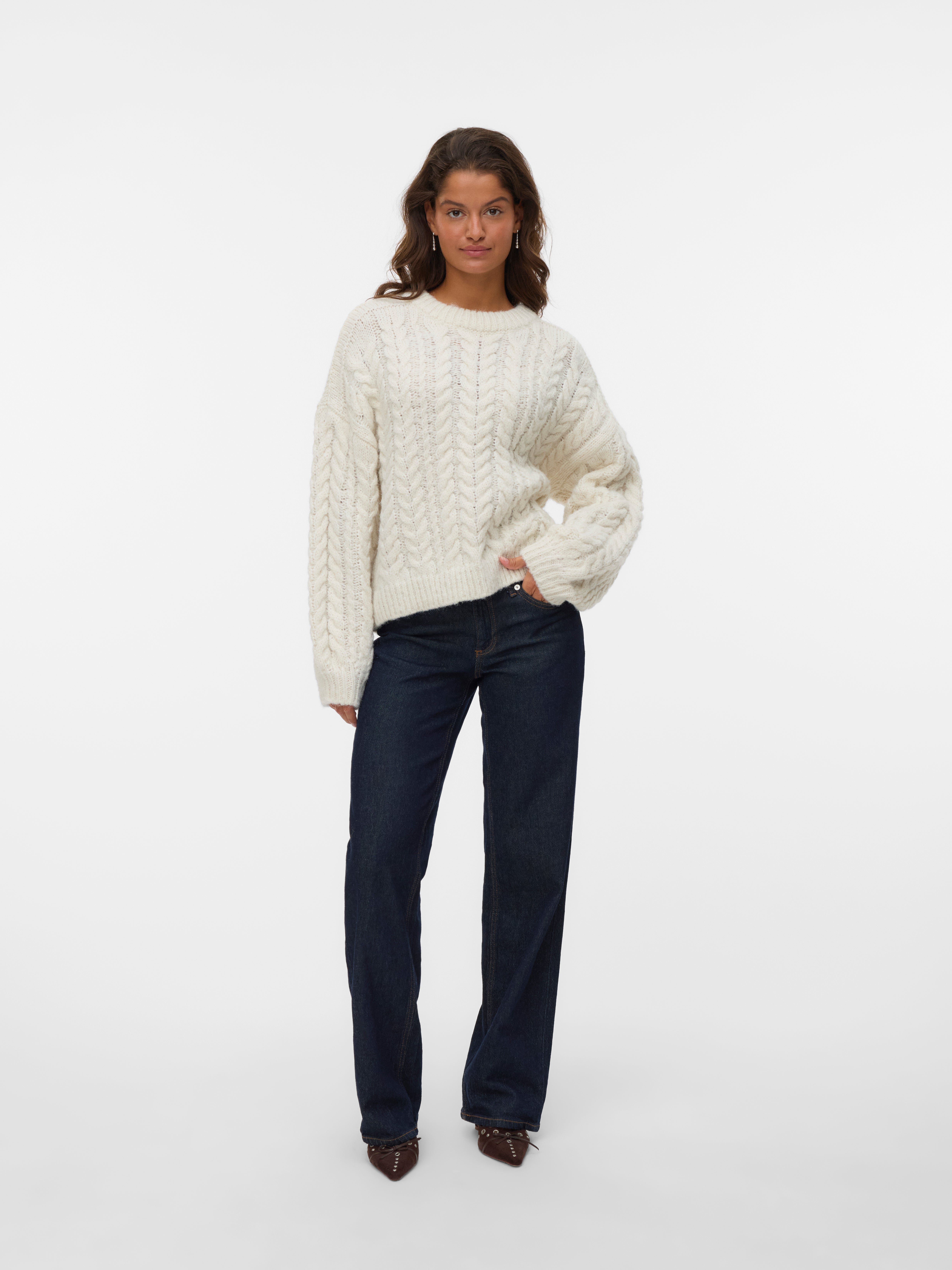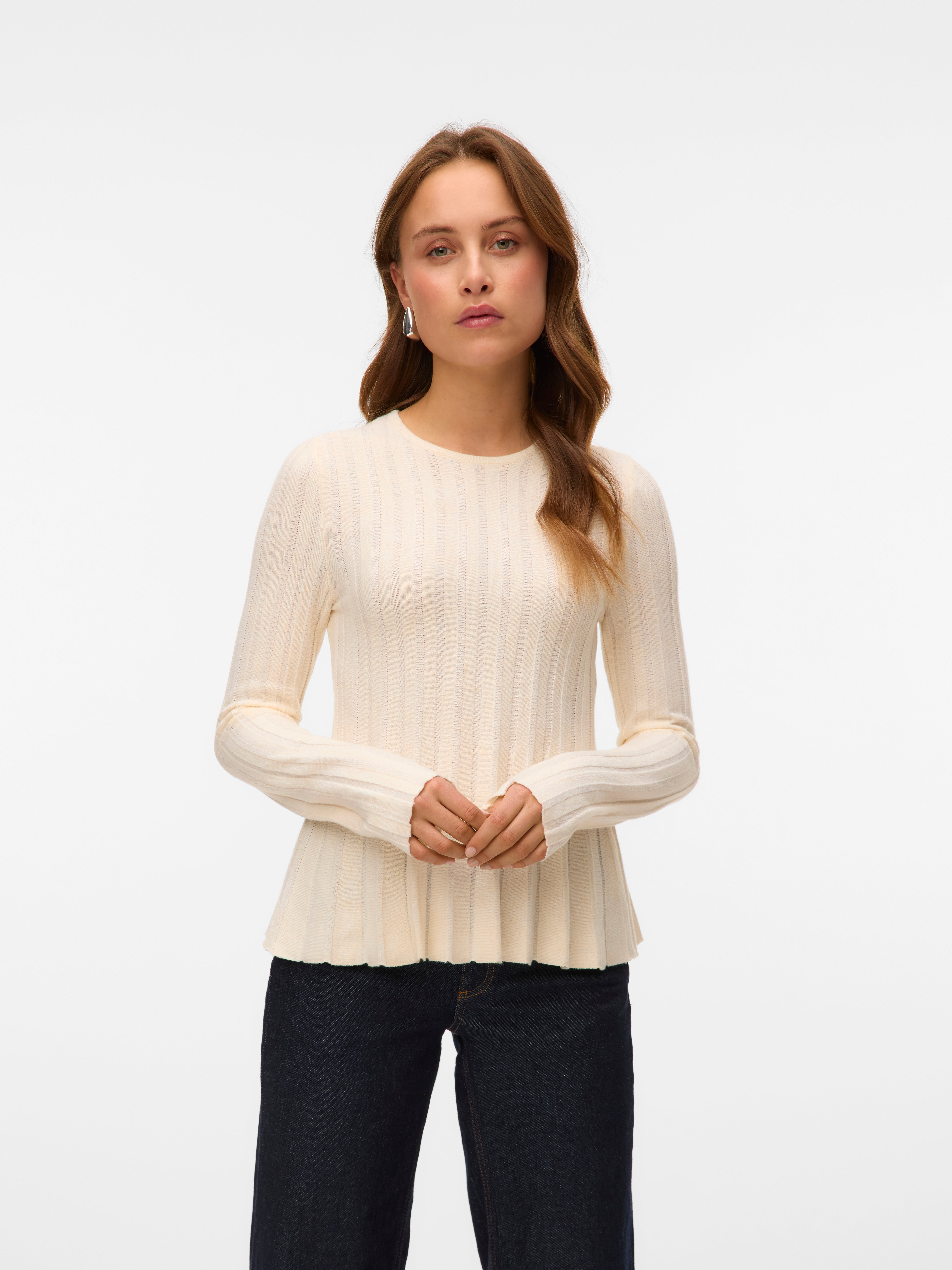of our black blazers and get the perfect outfit for the office - it is a great addition to your selection of office wear. If you want a trendy twist, you can choose an oversized sweater, which comes in a variety of styles, colours and designs. Style it with a shirt underneath, a pair of mom jeans and some sneakers and you got yourself a stylish but relaxed look. Puffy sleeves, voluminous collars and feminine details - whatever you are looking for, VERO MODA got it! A knitted sweater is also perfect for a cold summer evening to keep warm. Throw it over your long summer dress to get a bohemian look or keep it simple and pair it with a t-shirt and a mini skirt. Bring your favourite knit and be both practical and trendy by matching it to whatever outfit you are wearing. As we have a wide selection of styles, you can find basic colours such as white, beige, grey and more, but also pastel colours or softer colours in purple, green, blue and much more! Find jumpers that suit your style and personality. And do not forget to check out our new collection and upgrade your wardrobe for the upcoming season with VERO MODA. Psst. we have a 100-days free return!