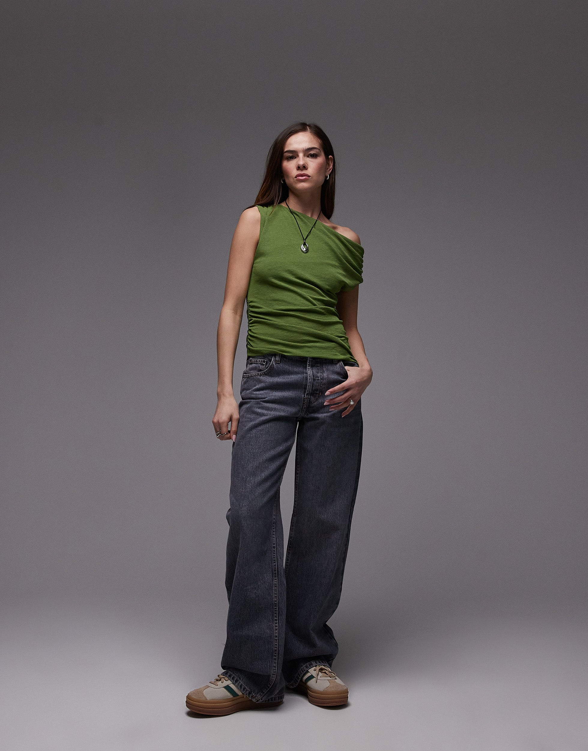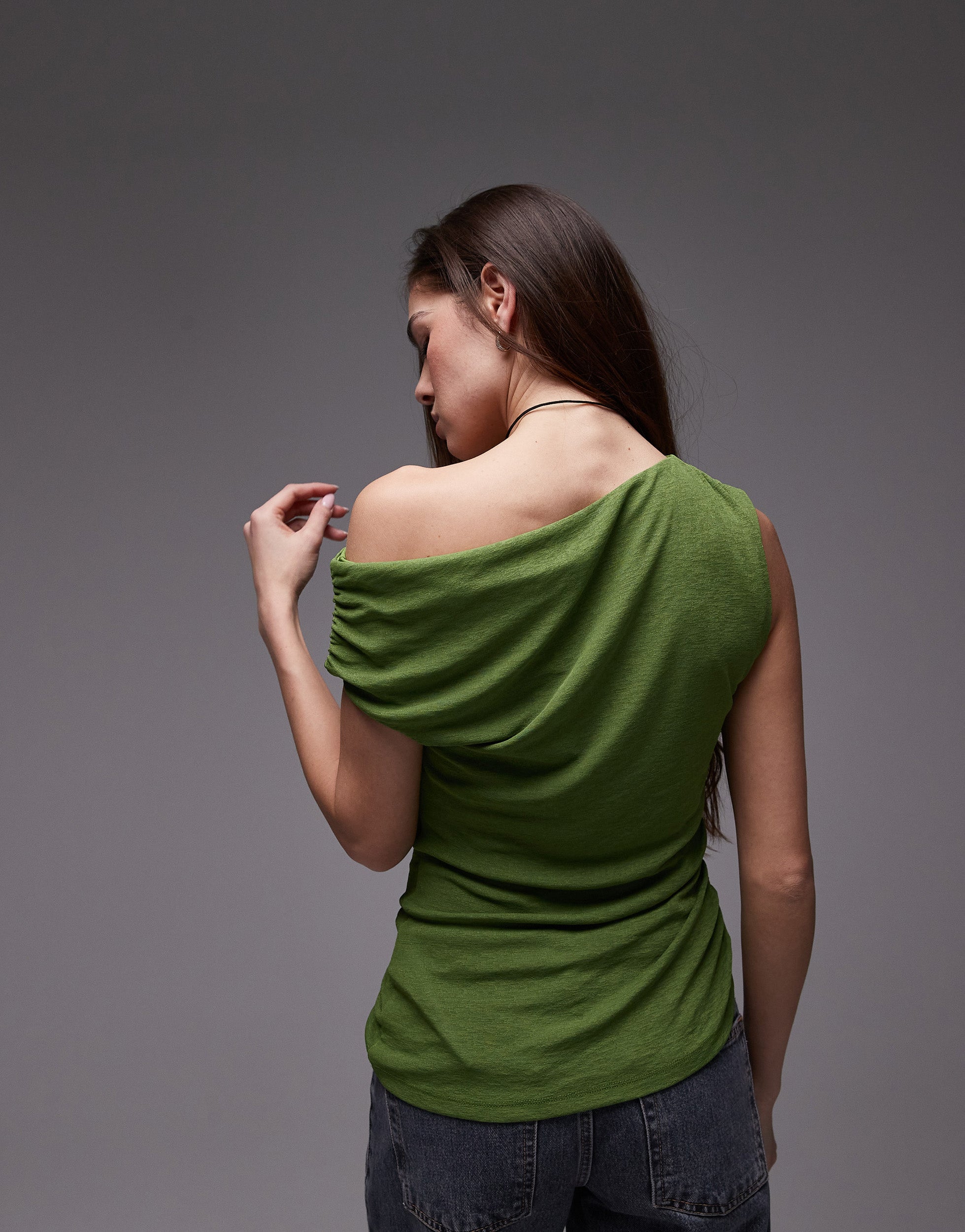 Topshop draped asymmetric shoulder top in green - MGREEN
