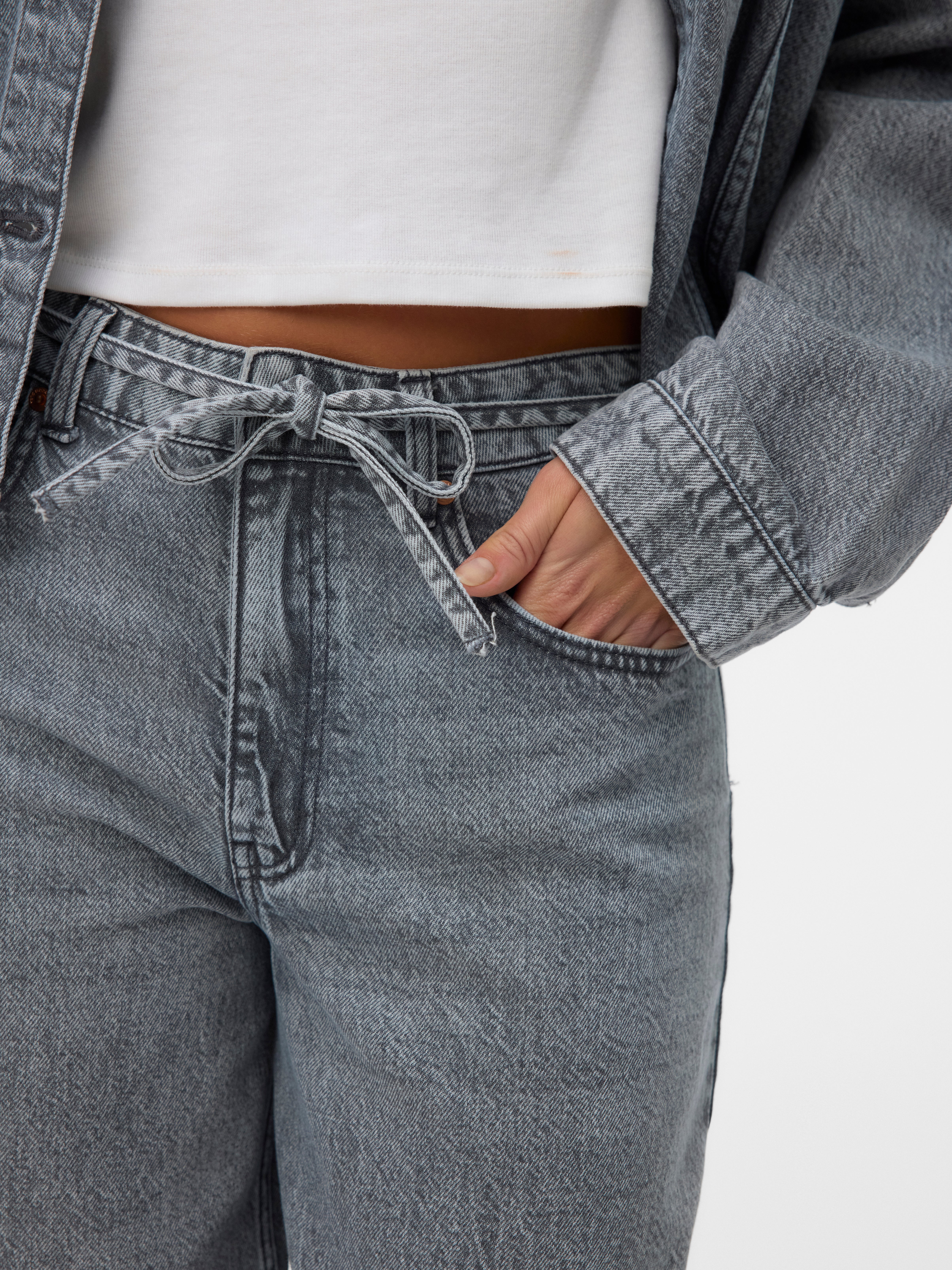 Kõrge vöökoha ja avara lõikega Kõrge värvel Teksad