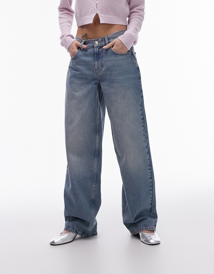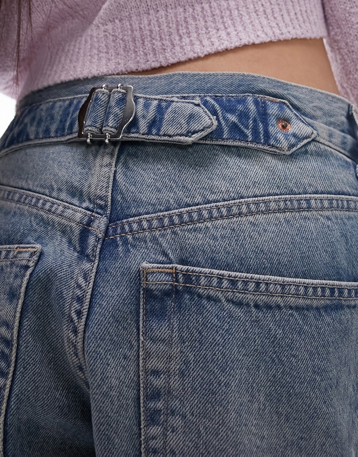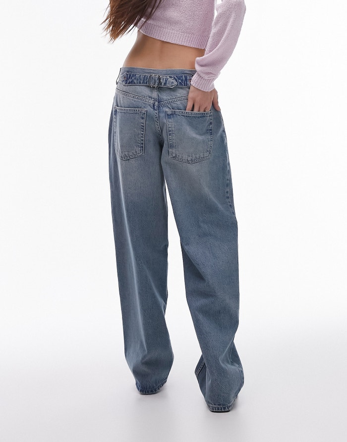 Topshop Cinch low rise relaxed jean in vintage bleach - LBLUE