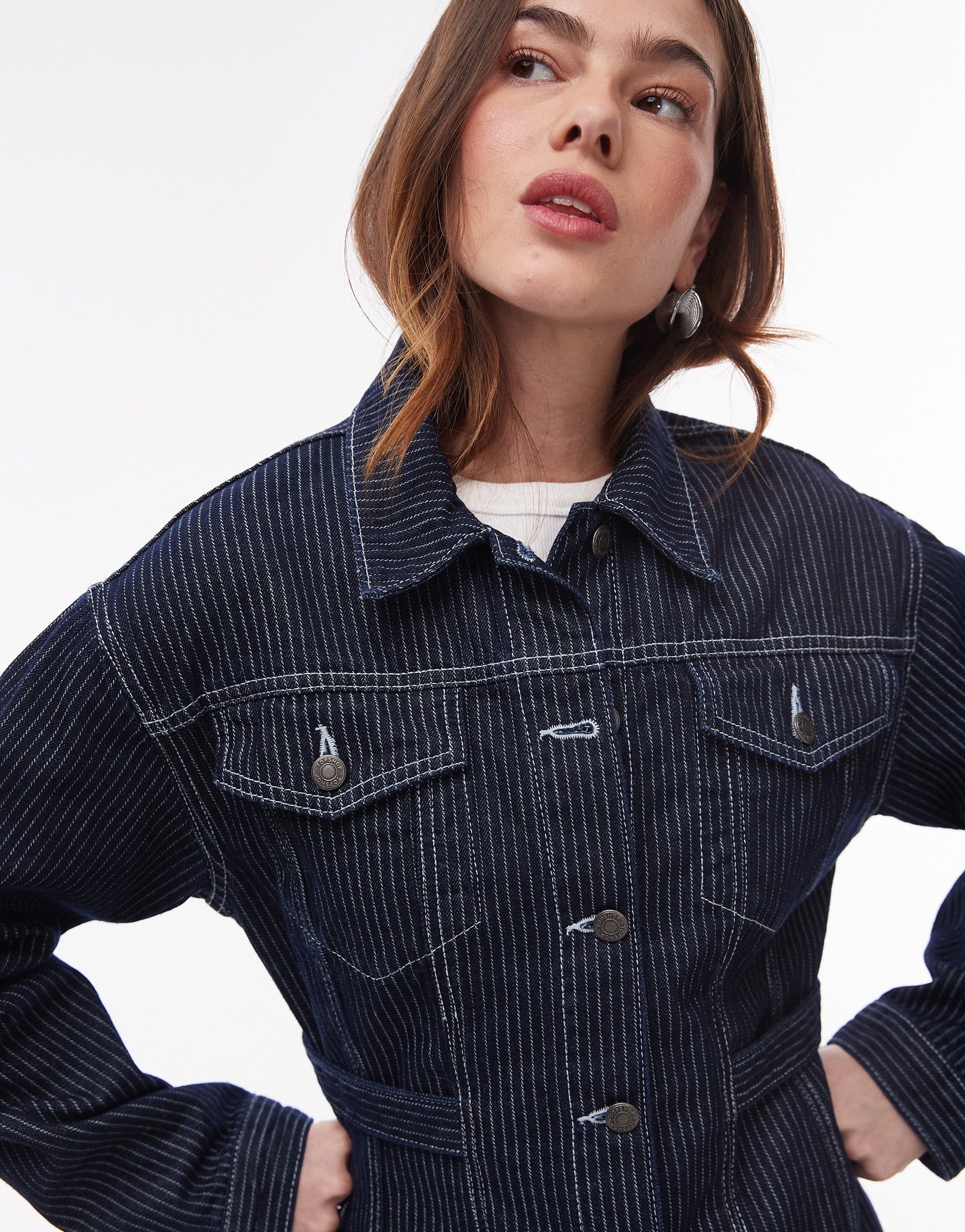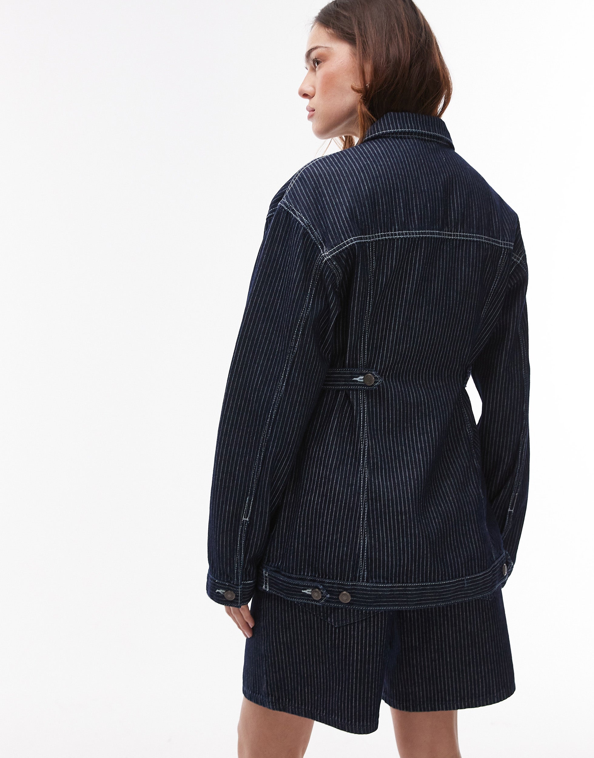 Topshop denim cinch detail jacket in indigo stripe - MBLUE