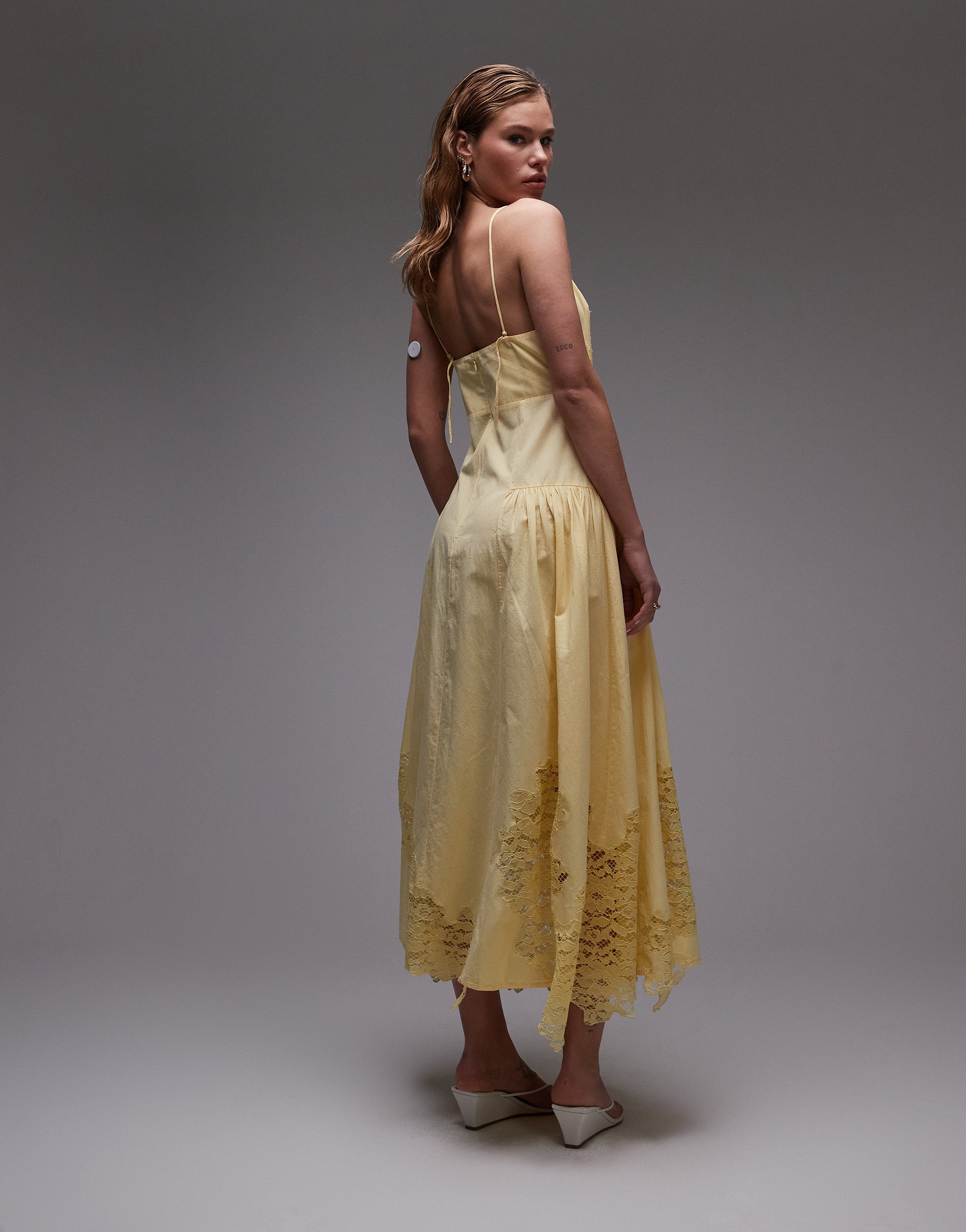 Topshop cutwork lace poplin midi sundress in lemon - YELLOW