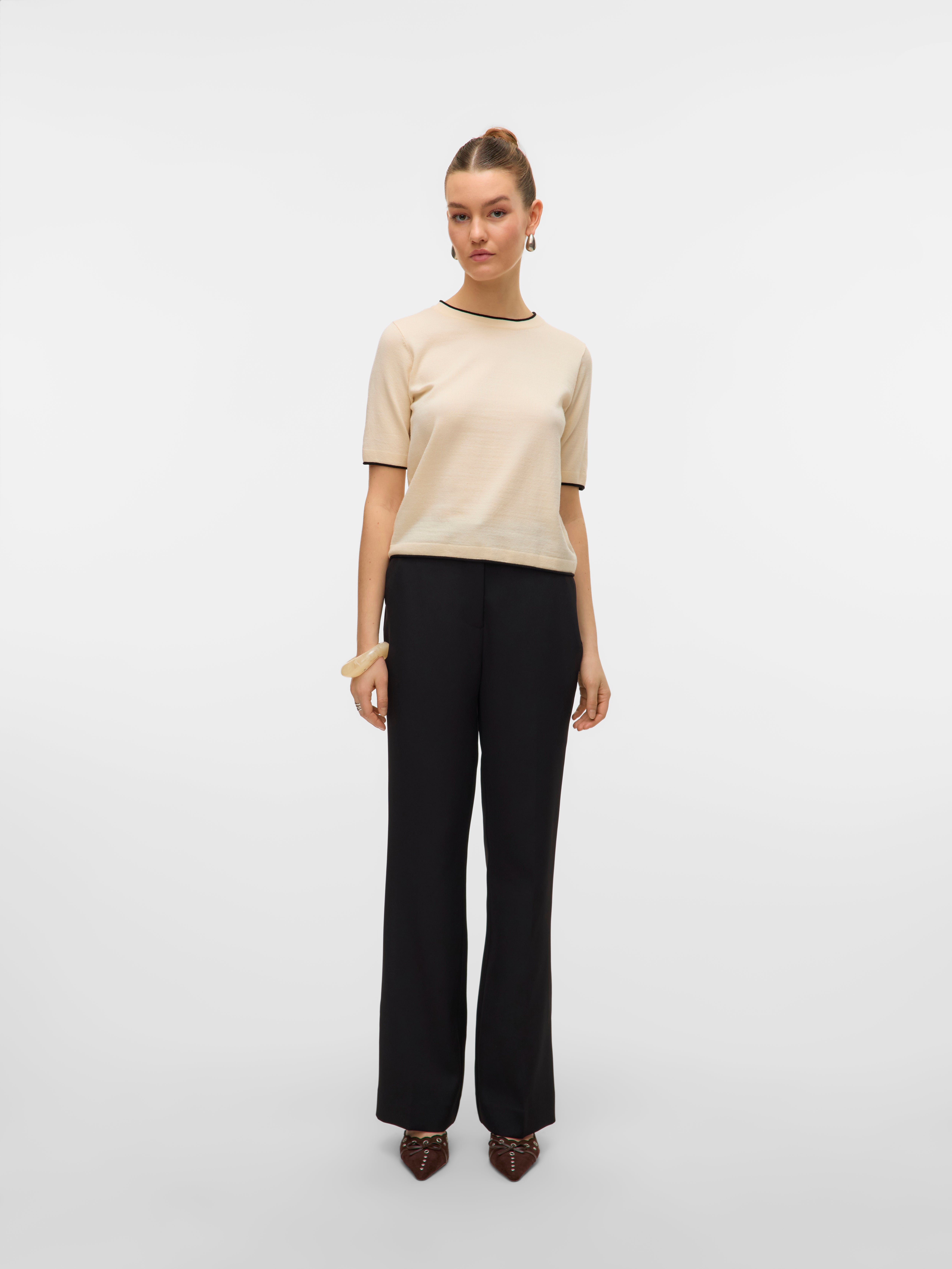 Päivitä vaatekaappiasi ajattomalla ikonilla. Housut tekevät ilmeestäsi hienostuneemman. Yhdistä nämä puseron tai paidan kanssa ja lisää asuun korolliset saappaat, niin saat tyylikkään arkiasun, joka toimii myös toimistolla. Kaipaatko sittenkin jotain rennompaa? Yhdistä klassiseen t-paitaan ja tyylikkäisiin tennareihin.