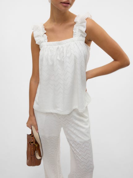 leggings dans une version imprimée ou de couleur sombre aux teintes brûlées : parfaits pour un look tendance de saison. Vous préférez les tenues intemporelles et basiques ? Optez alors pour un top blanc classique et un flared jean bleu pour une tenue indémodable. Nos tops sont vraiment parfaits pour passer du bon avec un haut qui peut être combiné facilement et dans lequel vous vous sentirez à l’aise. Mais on a encore beaucoup à vous faire découvrir juste ici dans la catégorie de nos tops décontractés ou vous trouverez vos modèles préférés parmi nos chemises, chemisiers, tops et tuniques. Vous avez déjà couvert les bases avec un t-shirt et un débardeur, mais vous avez besoin de quelque chose pour une occasion spéciale ? Explorez nos superbes tops de soirée. Vous y trouverez forcément un top à paillettes aux détails féminins. Explorez la collection dès aujourd'hui et trouvez de nouveaux favoris parmi la sélection de tops pour femmes de VERO MODA.
