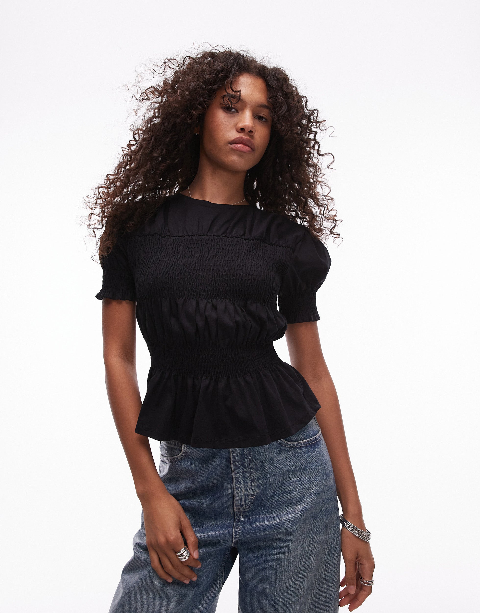 Topshop shirred panel tee in black - BLACK