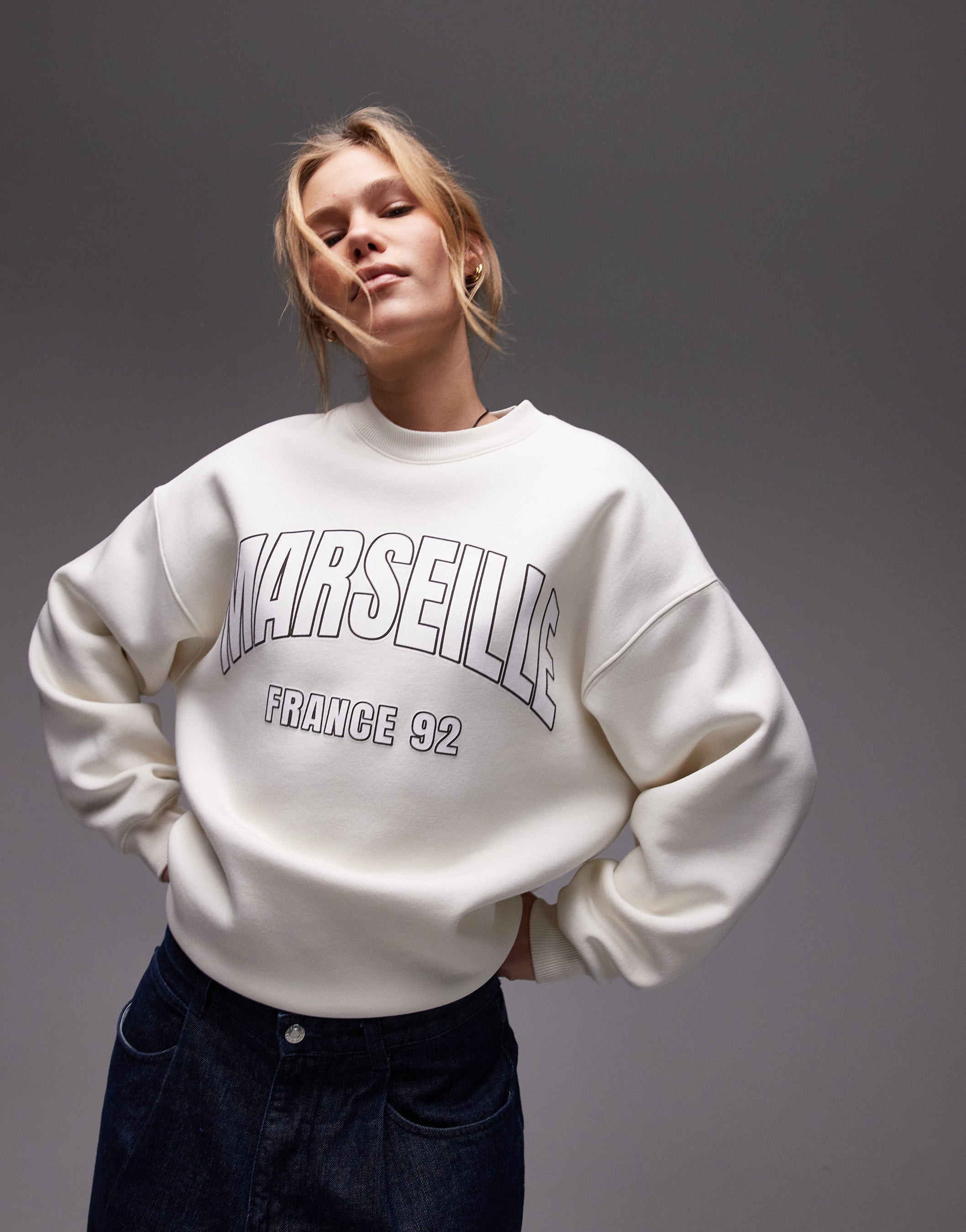 Topshop graphic Marseille oversized sweatshirt in ecru - CREAM