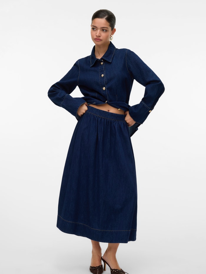 Le denim est toujours une bonne idée, même pour les jupes. Un vrai classique que vous pouvez styliser pour un usage quotidien comme bon vous semble. Pour un look fun, associez-la à une veste en jean et le tour est joué !.
