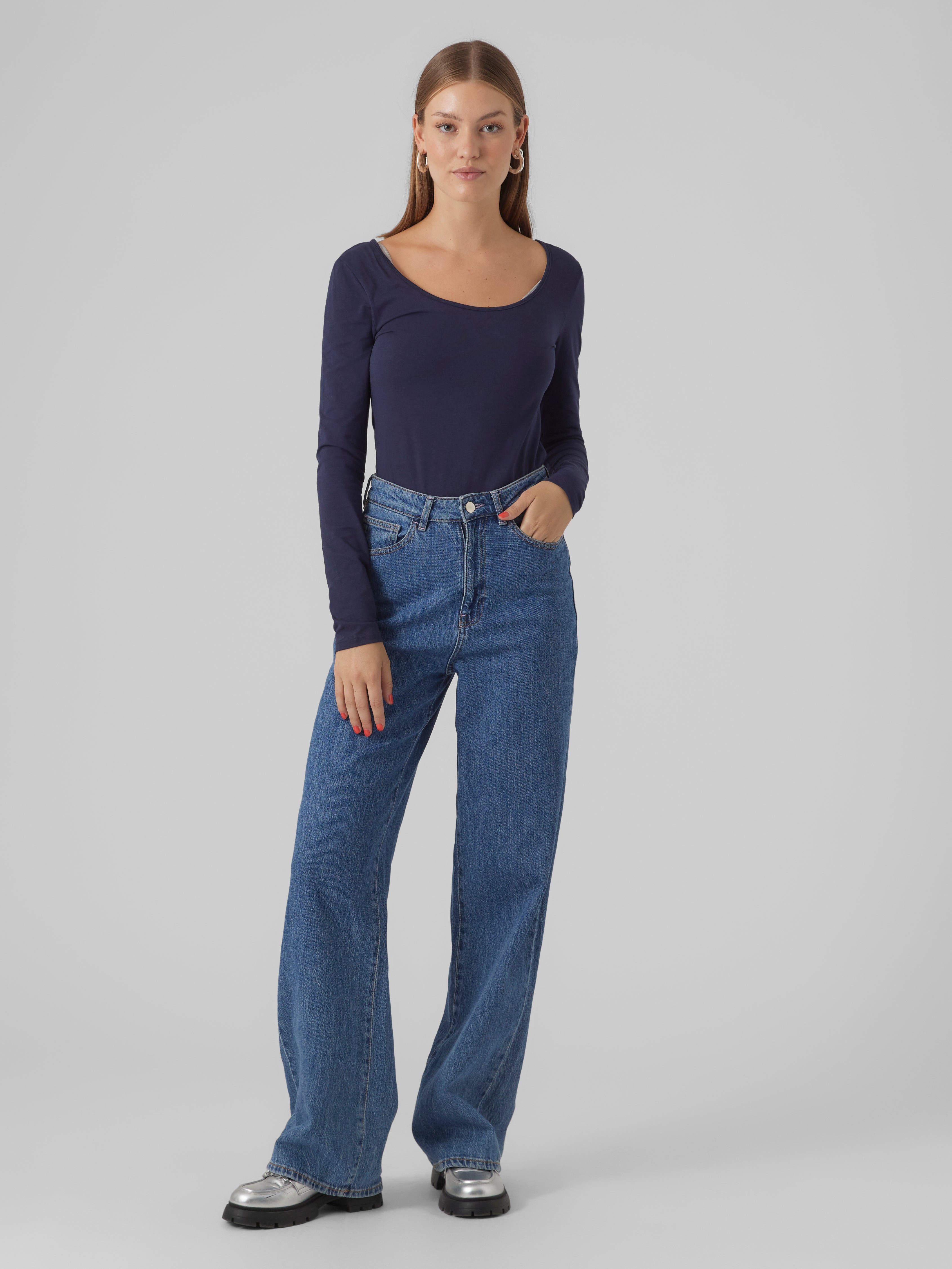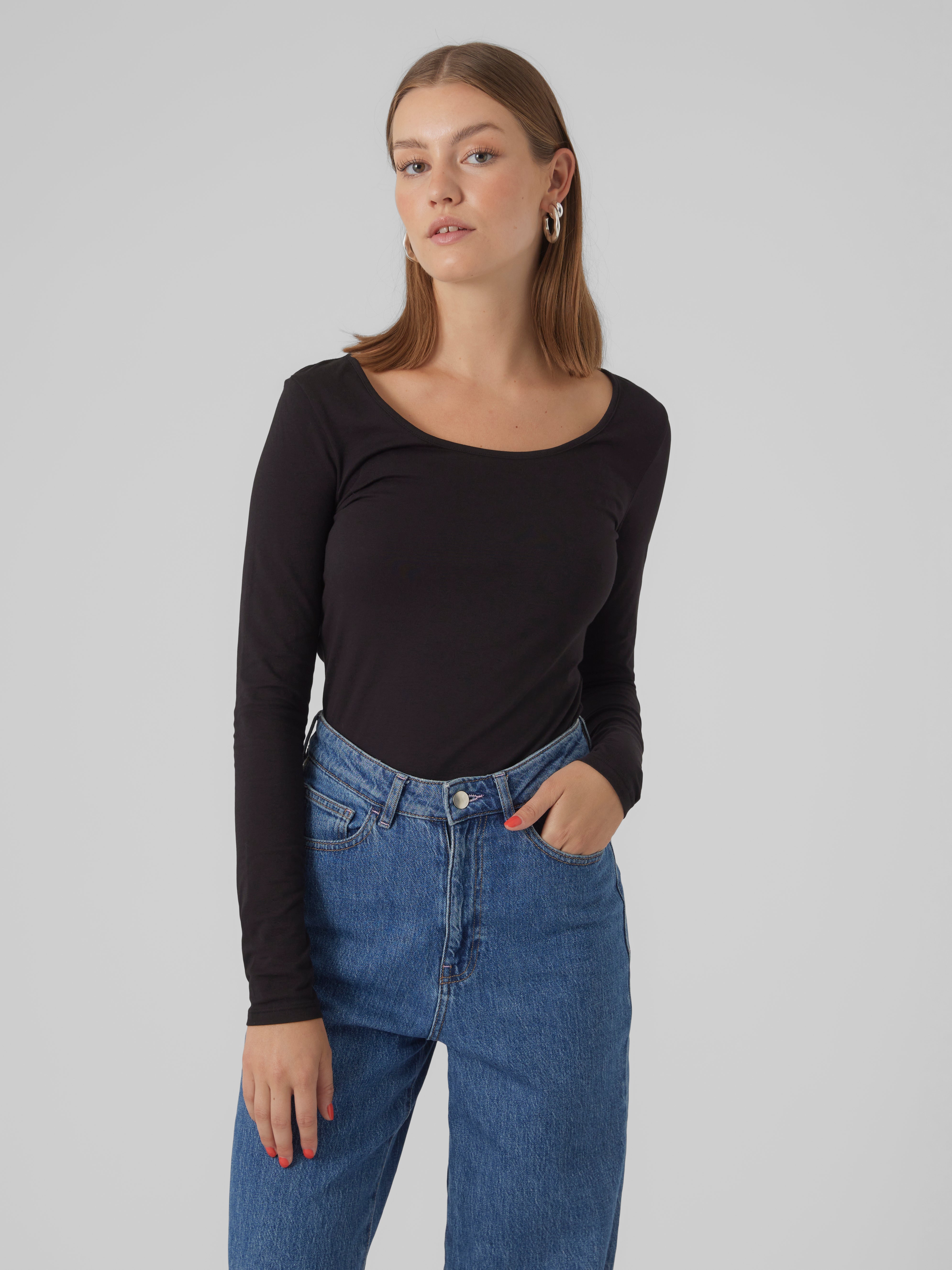 Osnove je neizbježno pronaći u gotovo svakoj garderobi. Naši osnovni vrhovi pomažu u povezivanju odjeće i ovaj vrh ne čini iznimku. Nosite ga s okovom na vrhu, parom opuštenih mama-traperica i debelim čizmama i dobivate opušten i cool svakodnevni izgled.