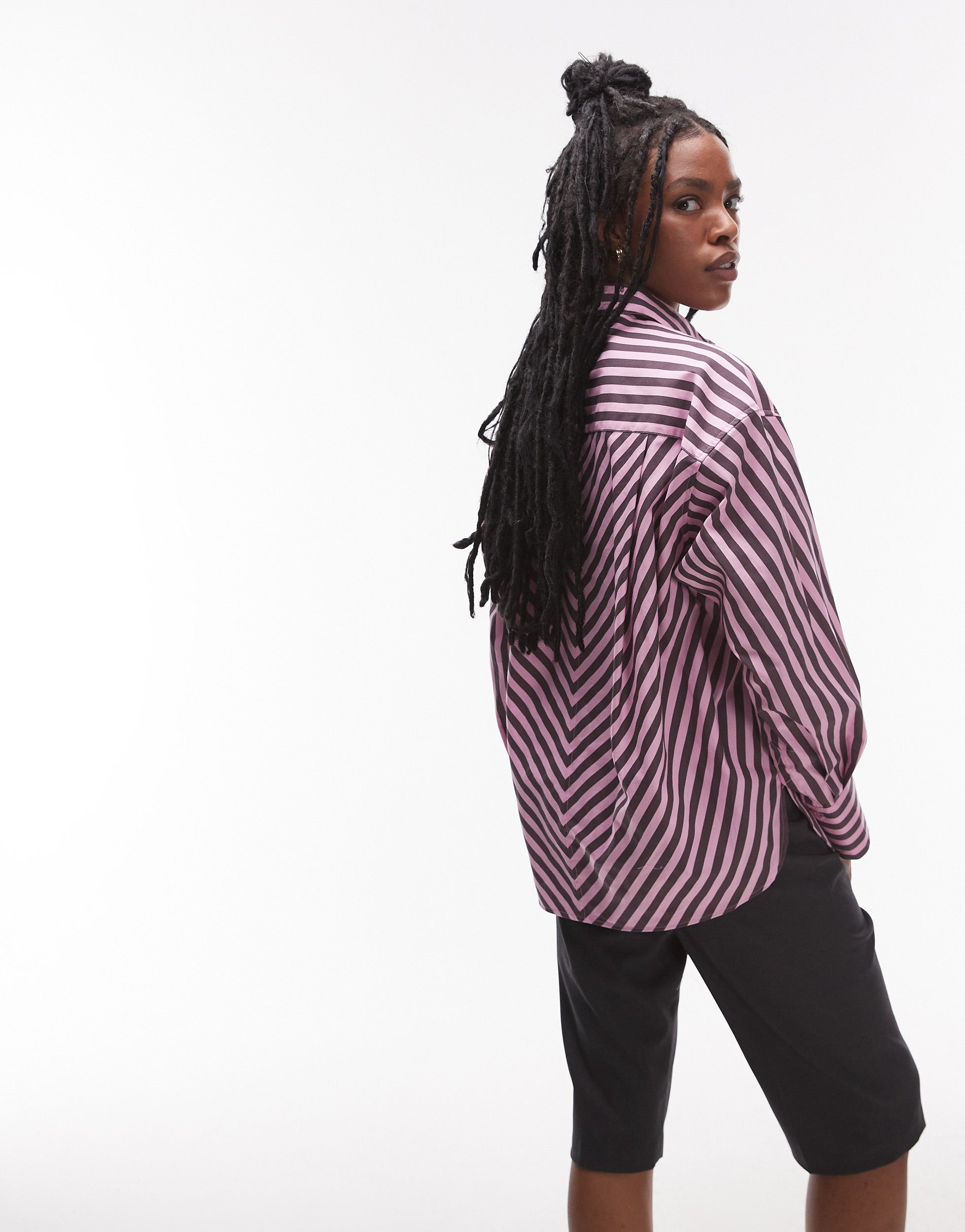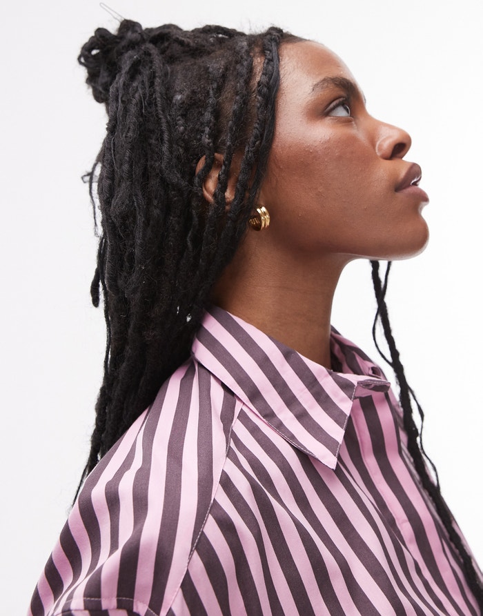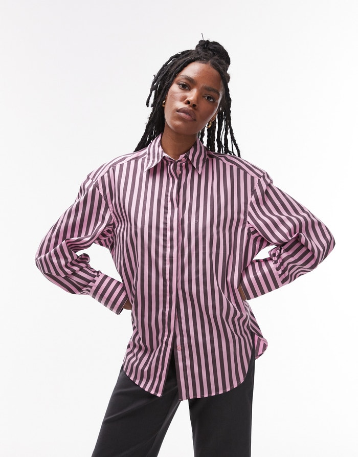 Topshop poplin shirt in purple & pink stripe - PINK