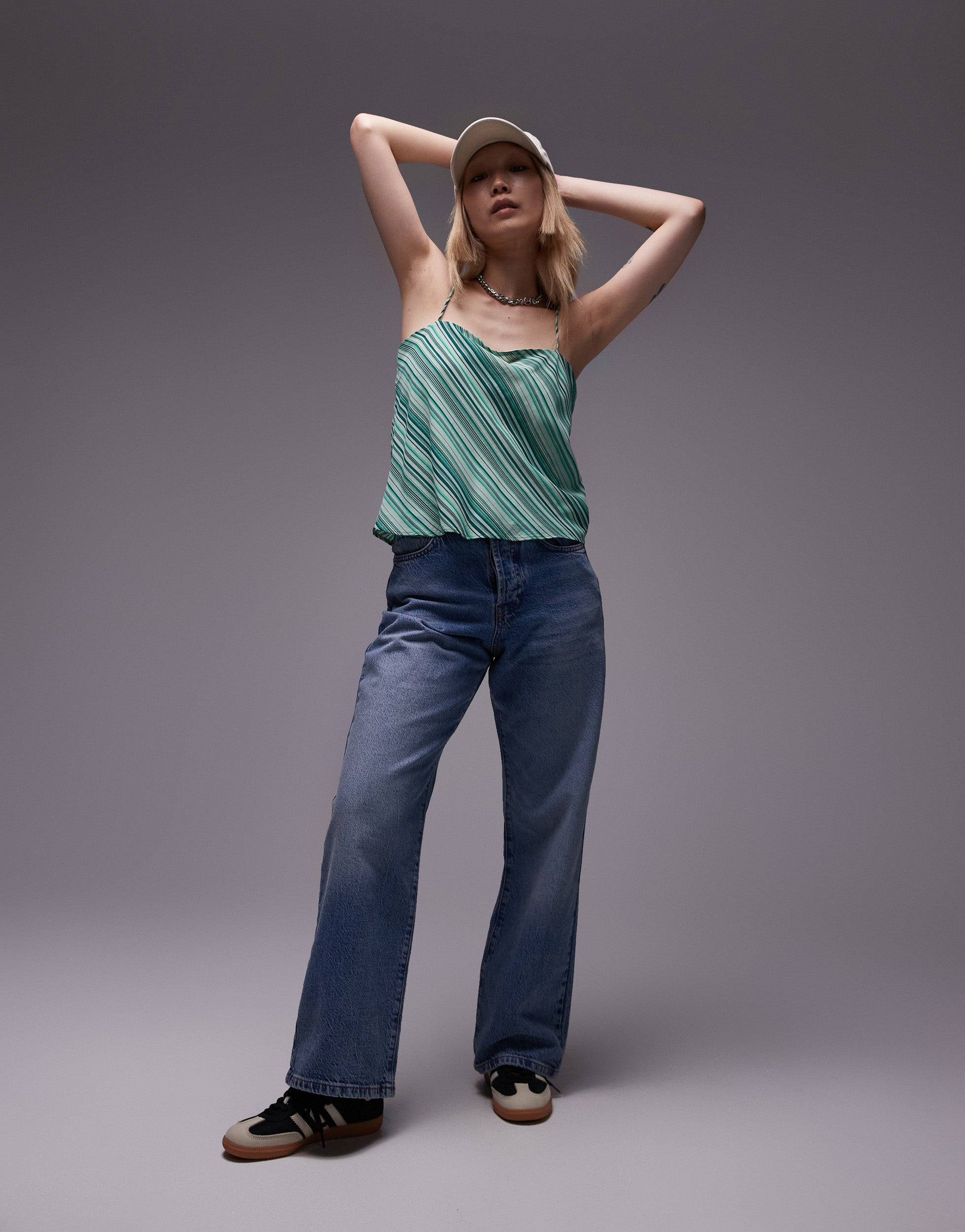 Topshop mid rise loose fit straight jean in green stripe - MGREEN