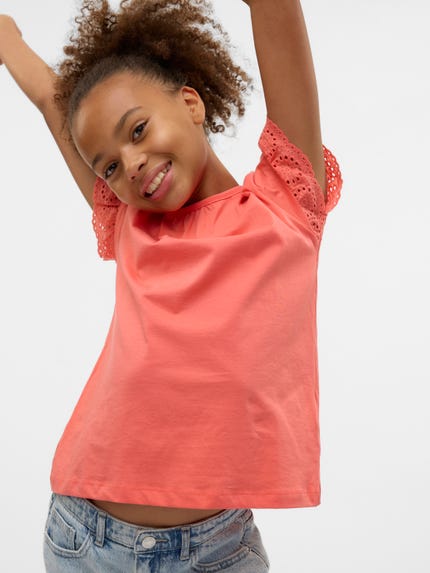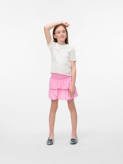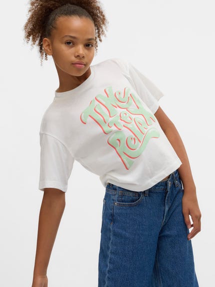 Bij VERO MODA GIRL vinden we het belangrijk dat meiden kleding kunnen dragen die hun eigen stijl is en daarom hebben we zowel stoere als meisjesachtige kleding. De ene draagt graag een stoere jeans met een leuk T-shirt, terwijl de andere graag een leuk rokje met een top draagt. Ongeacht de stijl van je dochter, ze zal bij ons haar favoriete kleding vinden. Je vindt bij ons kleding met verschillende patronen, ruffles, prints en nog veel meer!