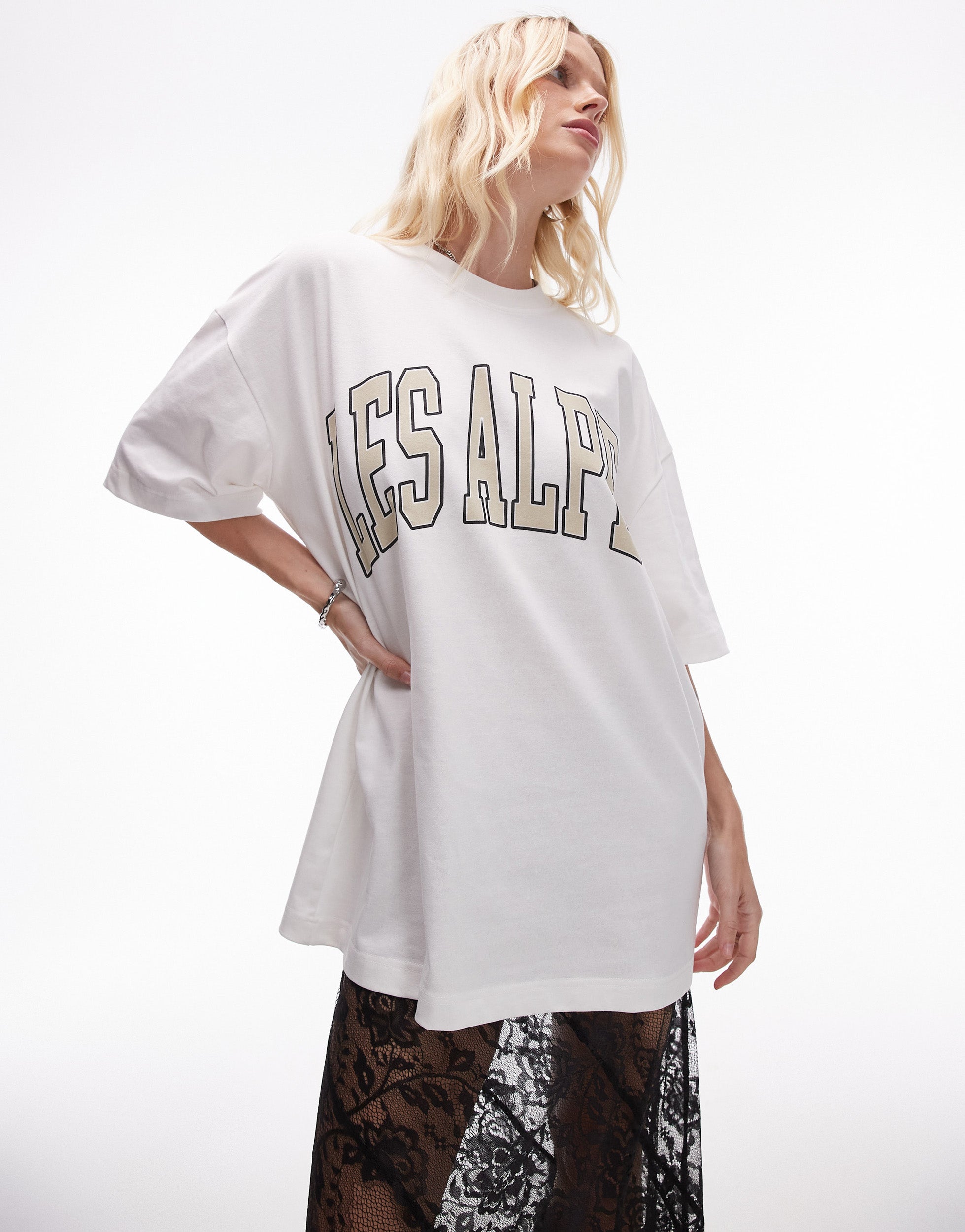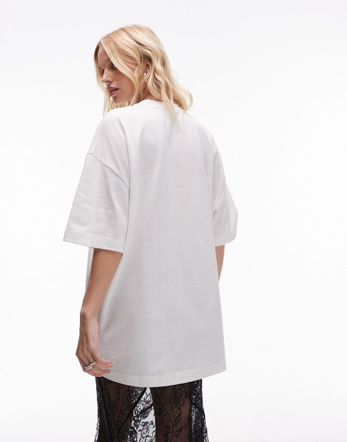 Topshop graphic premium Les Alpes oversized tee in white - WHITE