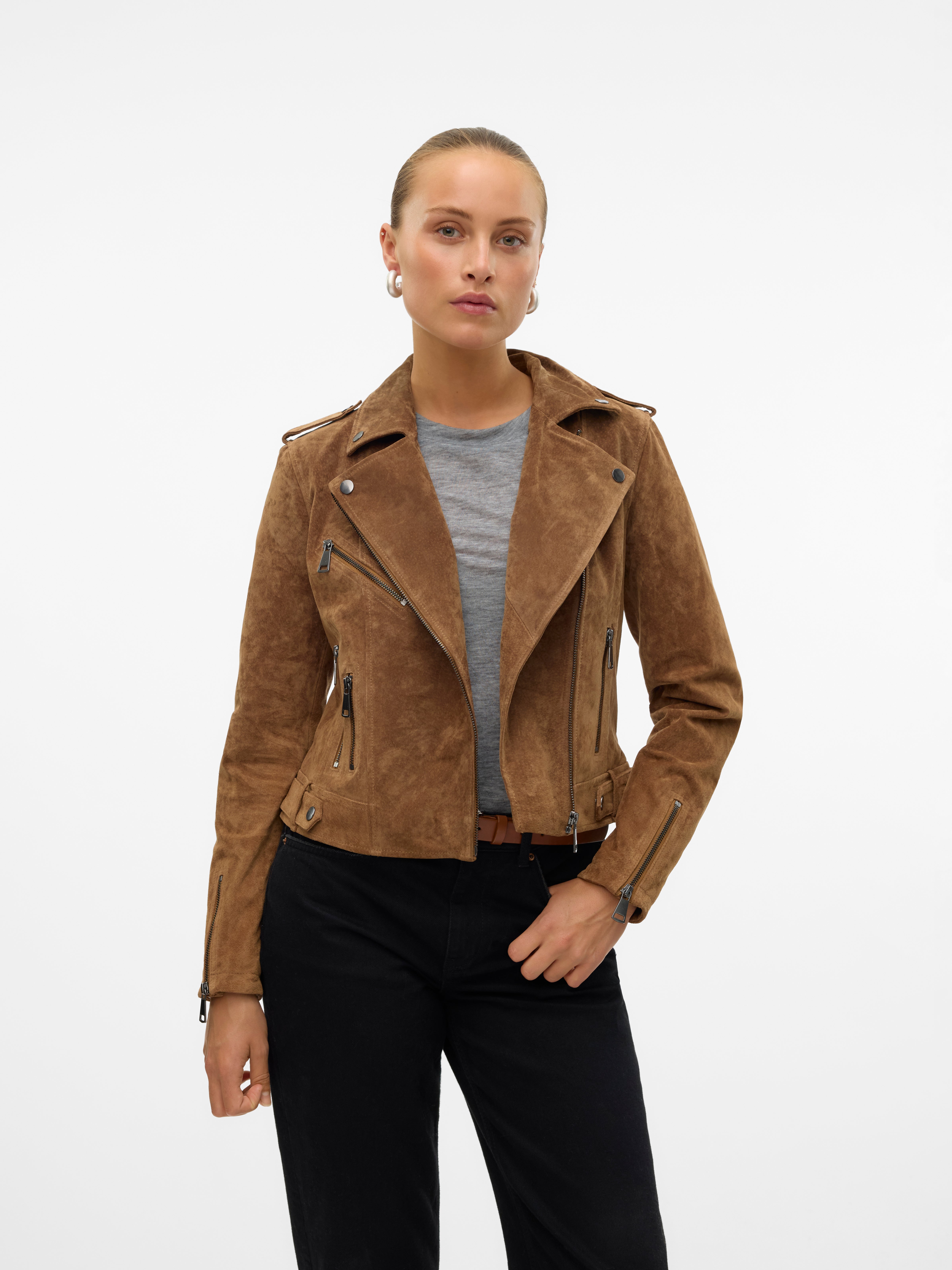 Ko izbirate svojo semiš jakno, je najpomembneje najti kroj, ki ustreza vašemu vsakdanjemu življenju. Ali naj bo to vaša prehodna jakna, ali iščete slog, ki vaši opravi doda bolj drzen občutek? VERO MODA ponuja vse od drznih, motoristično navdihnjenih oblačil do elegantnih, čistih linij, ki jih lahko enostavno kombinirate z vsem v vaši garderobi.
