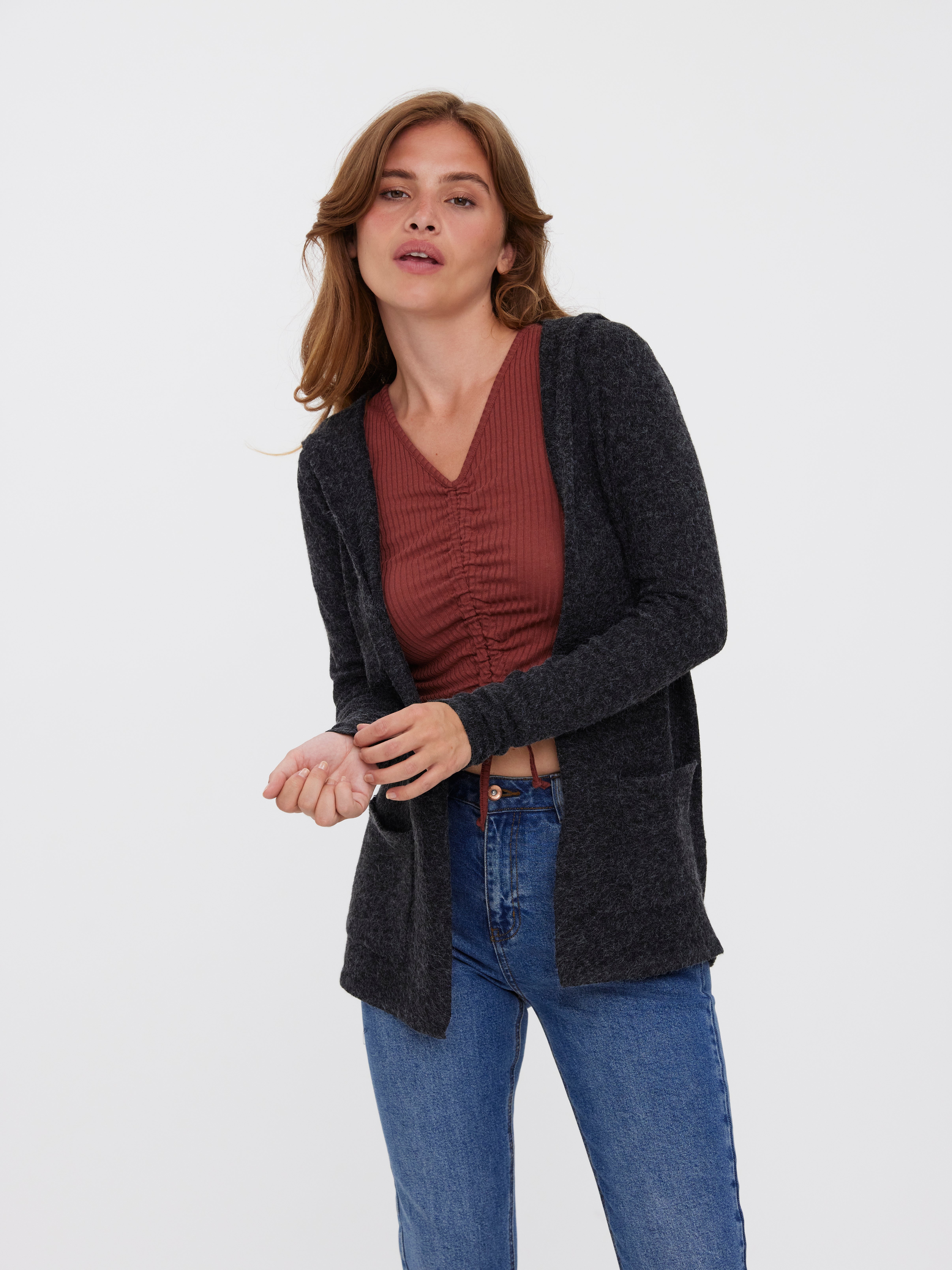Ta dodatna plast, ki brez napora izboljša vaš videz. Ta lahki jopica je popoln kos, idealen za plastenje ali pa, da izstopa sama po sebi. Stilirajte jo s parom kavbojk za vsakodnevne možnosti ali pa izberite krilo in škornje, da se počutite bolj urejeno.