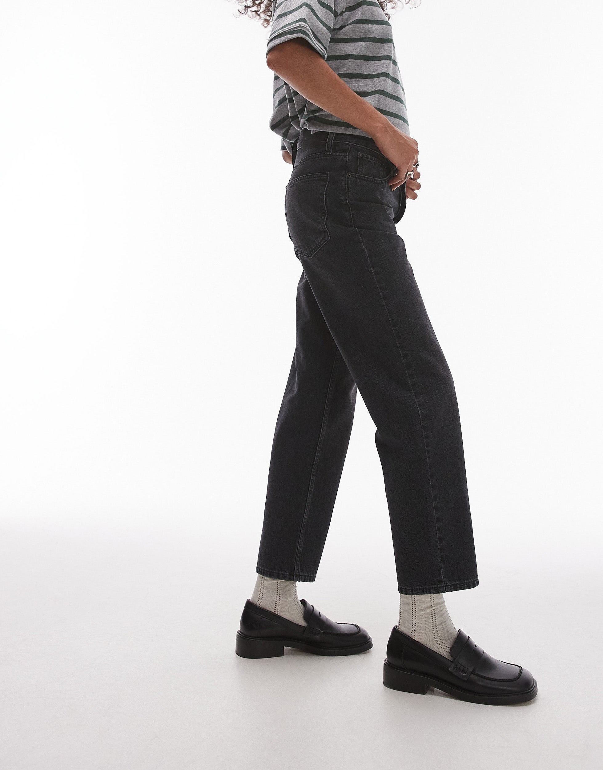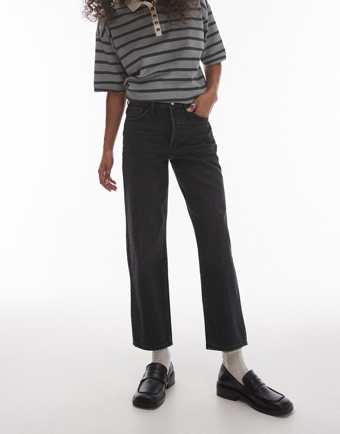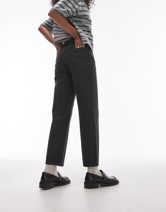Topshop Runway mid rise straight cropped jean in washed black - BLACK